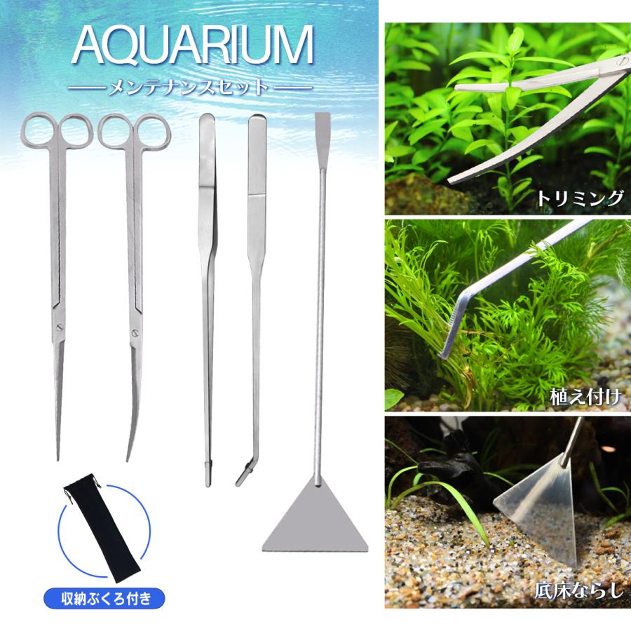 水草トリミング 5点セット お手入れ ハサミ ピンセット ストレート ステンレススチール製熱帯魚水草セット カーブ 信託 水槽 水槽管理 掃除 サンドフラッター